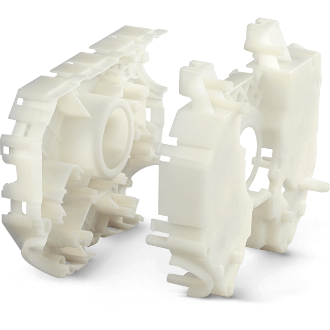 Ultra-tough white plastic, replaces CNC-machined polypropylene and ABS